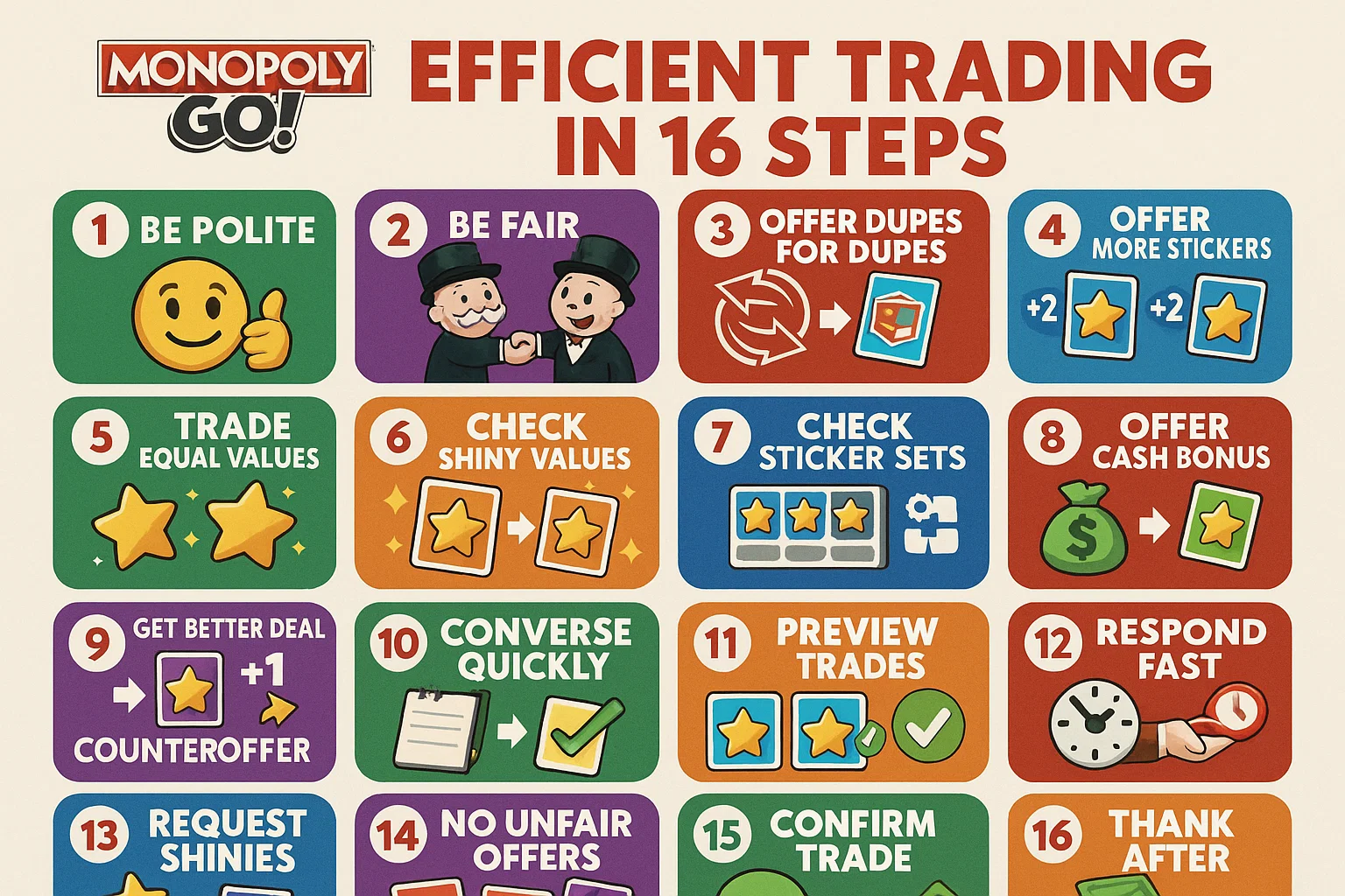 Trading stickers in Monopoly Go can be a game-changer if done right. Whether you’re aiming to complete albums faster or just want to help out your trading partners, efficiency is key. Here’s a streamlined 16-step guide to maximize your sticker trades without the hassle.
